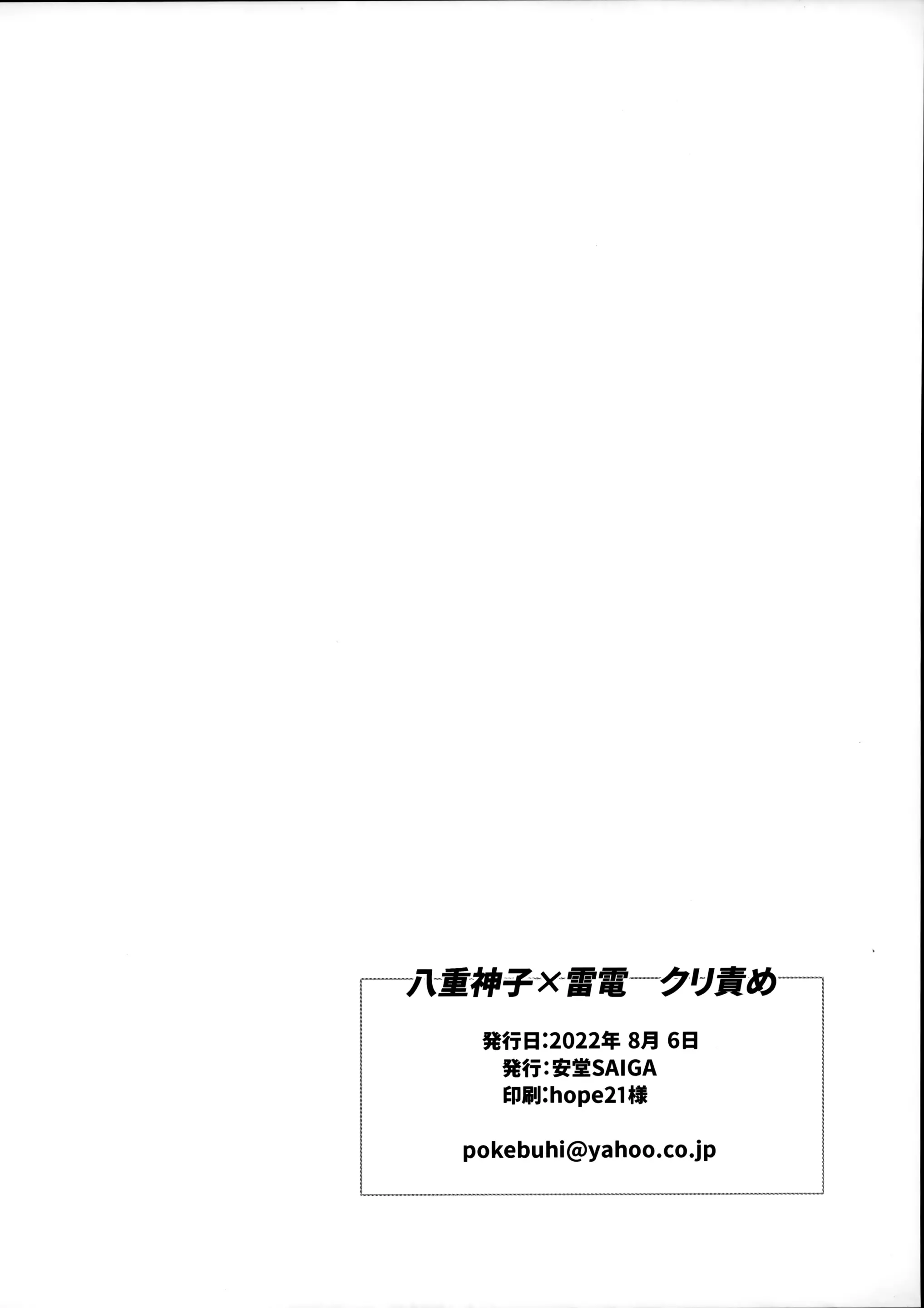 (C100) [安堂SAIGA (SAIGA堂)] 八重神子×雷电クリ责め
